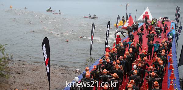 이날 대회는 36개국 1,363명의 철인동호인 선수들이 참가한 가운데 구례군 산동면 지리산호수