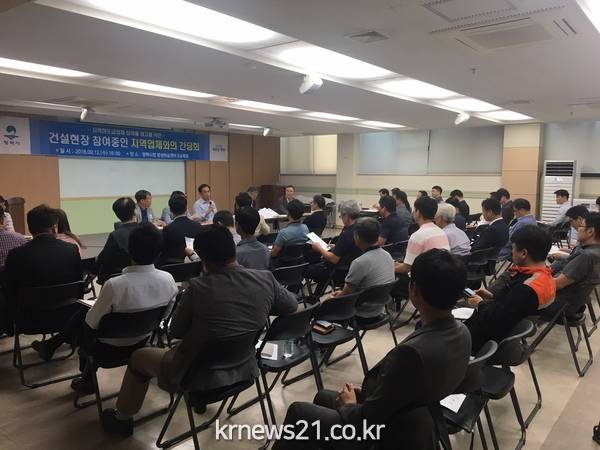 이날 간담회는 그동안 현안사항으로 나온 건설현장과 지역 업체 간의 시각차를 좁히고 시와 유기적 협력체계를 구축하기 위하여 마련된 자리로, 시 관계자를 비롯해 대형 건설현장에 참여하고 있는 지역건설업체들과 관련 협회 관계자들이 참석했다.