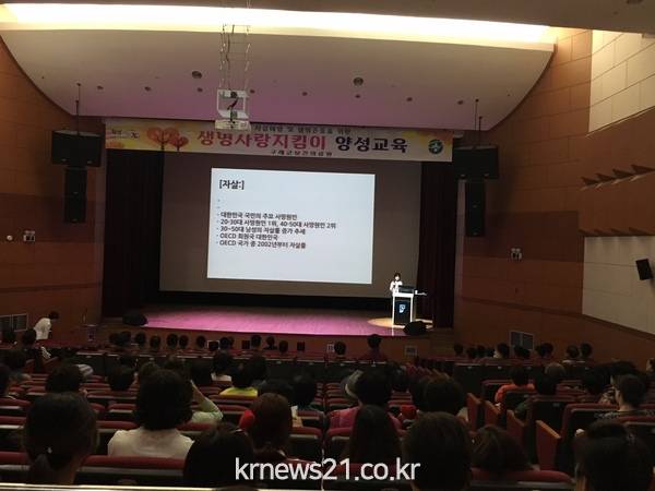 이번 교육은 한국형 표준자살예방 교육 프로그램 '보고 듣고 말하기'를 내용으로 생명사랑
