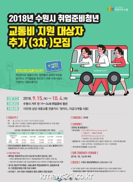 수원시가 10월 4일까지 ‘취업준비청년 교통비 지원’ 대상자 200명을 추가 모집한다.