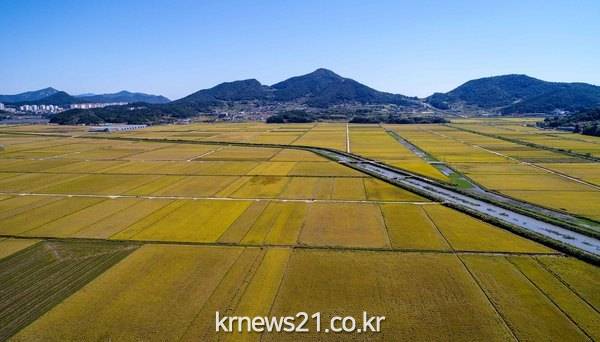 △완연한 가을 날씨를 보인 28일 오전 여수 소라면 가사리 친환경농업단지의 벼가 노랗게 익어가며 추수를 기다리고 있다.