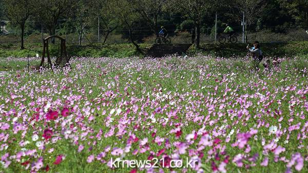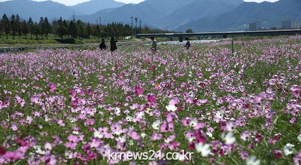 유휴부지를 활용해 서시천변 1.2km구간에 코스모스 단지를 조성하였다.