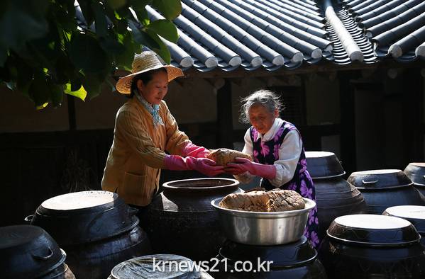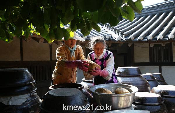 전남 구례 운조루 사랑채에서 9대종부 이길순 할머니와 며느리가 전통방식으로 손 없는