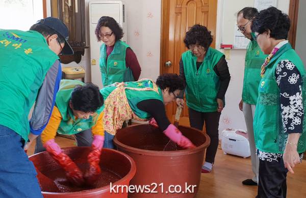 협의회원과 부녀회원 15명은 이날 전통방식으로 고추장(3㎏) 80여 개를 만들어 경로당과 저소득세대 전달했다.