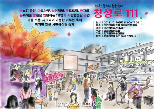 포천반월아트홀은 남녀노소 모두 즐길 수 있는 청성로111 축제를 오는 20일 11시부터 17시까지 야외무대에서 진행한다고 밝혔다.