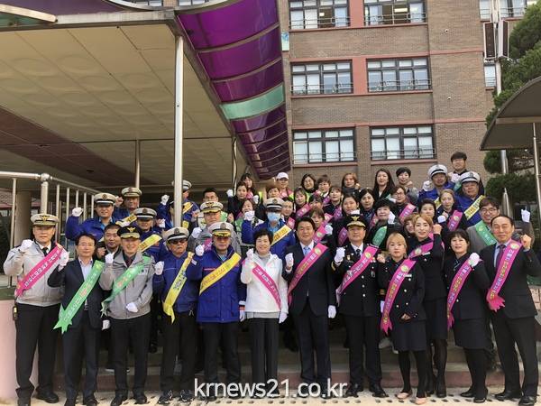 이날 캠페인 에서는 학교주변 교통안전시설 점검 및 등굣길 교통지도. 어린이대상 홍보물품을 배부하여