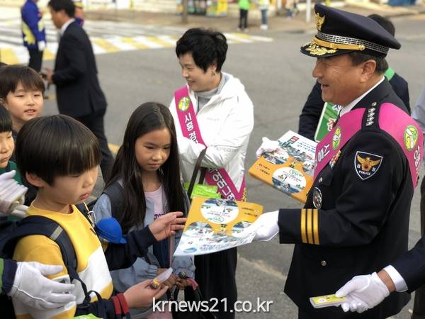 이재술 시흥경찰서장은 "녹색어머니와 합동캠페인을 통해 아아들에게 올바른 교통습관을 길러주고