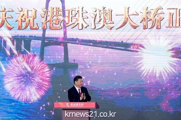 강주아오 대교 주하이 인공섬 출입국 관리소에서 열린 개통식에서 시진핑 중국 국가주석이 참석했다. 홍콩에서 중국 본토인 광둥성 주하이와 마카오를 잇는 강주아오 대교는 자동차로 3시간 걸리던 주하이와 홍콩의 거리가 30분대로 단축시켰다.
