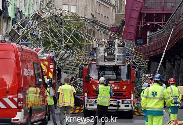 ▲  REUTERS/Eric Vidal[제공자ⓒ 뉴스21통신. 무단전재-재배포 금지.]벨기에 항구 도시 앤트워프 다이아몬드 지구(diamond district)에서 24일(현지시간) 대형 발판이 붕괴됐다.