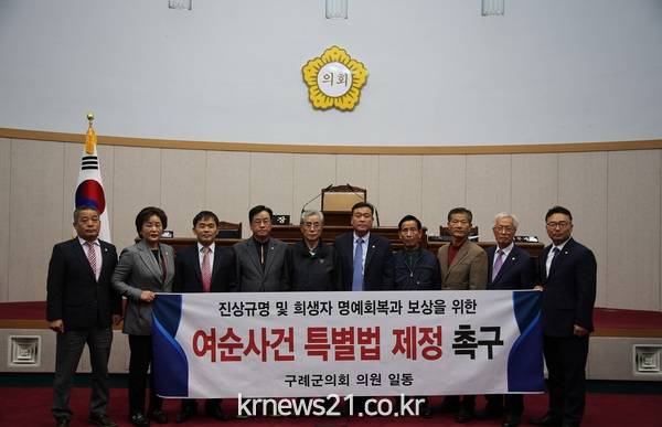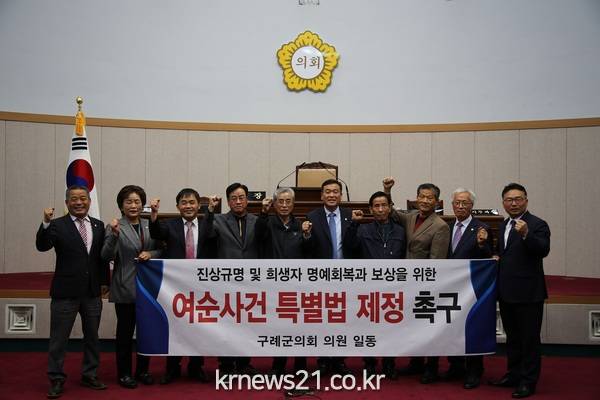 구례군의회는 지난 달 전남 동부권 7개 시군의회 의장단에서 여순사건 특별법 촉구 건