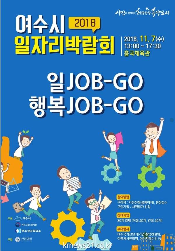 여수시(시장 권오봉)에 따르면 여수상공회의소와 공동주최하는 이번 일자리 박람회는 11월 7일 오후 1시부터 5시30분까지 흥국체육관에서 열린다.