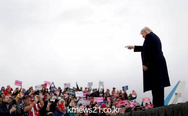 ▲  REUTERS/Carlos Barria[제공자ⓒ 뉴스21통신. 무단전재-재배포 금지.]미국 중간선거(6일 현지시간)가 다가오는 가운데 도널드 트럼프 미국 대통령이 3일 몬태나주 보즈먼옐로스톤국제공항에서 매트 로젠데일 공화당 후보의 지지 유세에 나섰다.