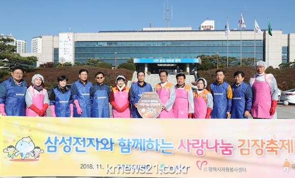 평택시자원봉사센터(사무국장 홍음희)는 지난 1일 시청 분수광장에 ‘2018 삼성전자와 함께하는 사랑 나눔 김장축제’를 열었다.