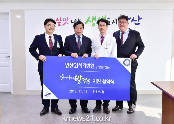 윤화섭 시장은 “지역사회의 어려운 이웃을 위한 안산 21세기병원의 지원에 진심으로 감사를 드리며, 이번 ‘희망의 발걸음’ 후원 협약처럼 지속적이고 체계적인 재능 기부로 건전한 나눔 문화가 활성화돼 더 많은 저소득층이 혜택을 받을 수 있기를 바란다.”고 했다.