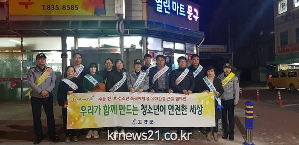 군청 관계자는 “수능을 마친 청소년들의 탈선 예방을 위해 관련 단체와 협력하여 연말연시까지 유해환경 개선 캠페인과 지도‧점검 활동을 지속적으로 추진하여 청소년들이 유해환경에서 벗어나 밝고 건강하게 성장할 수 있는 환경을 조성해 나가겠다.”고 밝혔다.