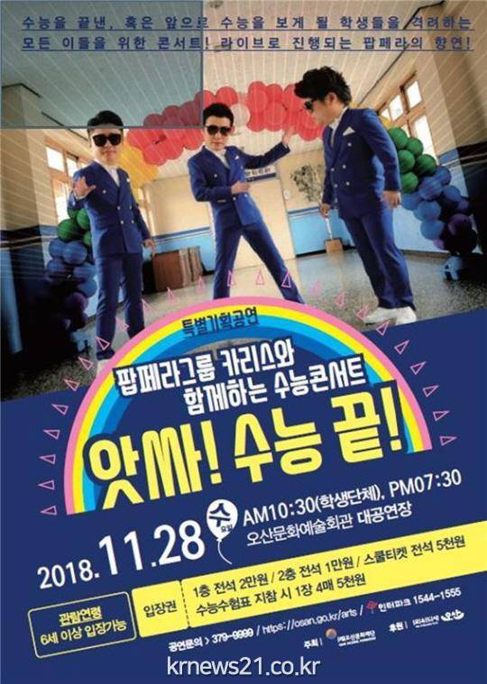 (재) 오산문화재단에서는 오는 28일 오산문화예술회관 대공연장에서 수능을 끝낸 수험생과 그들의 가족, 그리고 수능생을 응원하는 모든 이들을 위한 힐링 콘서트를 선보인다.