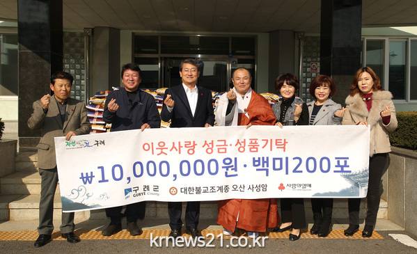 김순호 구례군수는 “우리군의 뛰어난 경승지 사성암에서 자비의 쌀 기탁에 감사드린다며