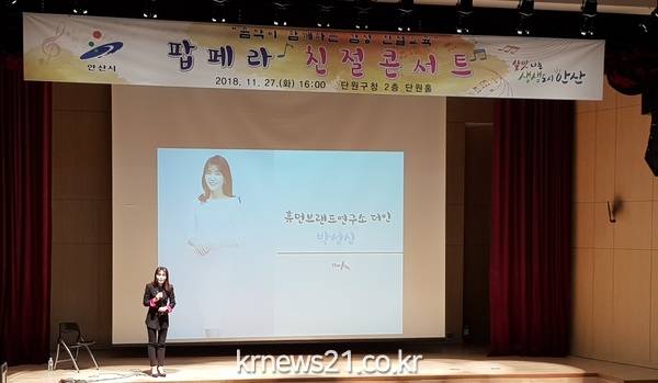 안산시(시장 윤화섭)는 지난 27일 단원구청 단원홀에서 민원 접점부서 직원들을 대상으로 음악과 함께하는 감성 친절 교육 ‘팝페라 친절 콘서트’를 실시했다.