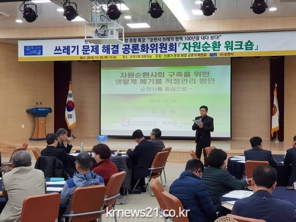 순천시(시장 허석)는 29일 시청 대회의실에서 ‘순천시 쓰레기 정책 100년을 내다보다!’라는 주제로 자원순환 워크숍을 개최했다.
