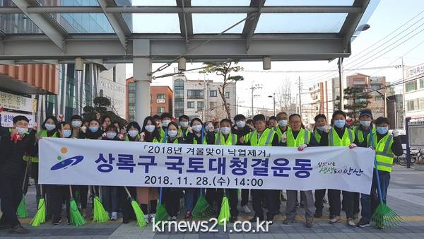 안산시 상록구(구청장 이태석)는 지난 28일 상록구 직원 및 환경미화원 등 70여 명이 참여한 가운데 겨울맞이 국토대청결 운동을 실시했다.