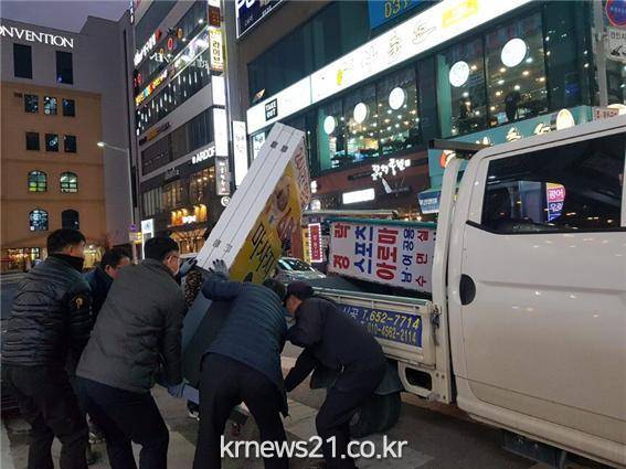 특히 야간에 집중적으로 설치되는 마사지 샵, 노래방 등의 에어라이트 25개를 행정대집행(수거)했으며 15일의 공고기간을 거쳐 1개월 보관 후 폐기할 예정이다. 또한 지난 10월 단속에 적발되지 않은 새로 설치된 에어라이트 20여개에 대해서도 계고장을 발부했다.
