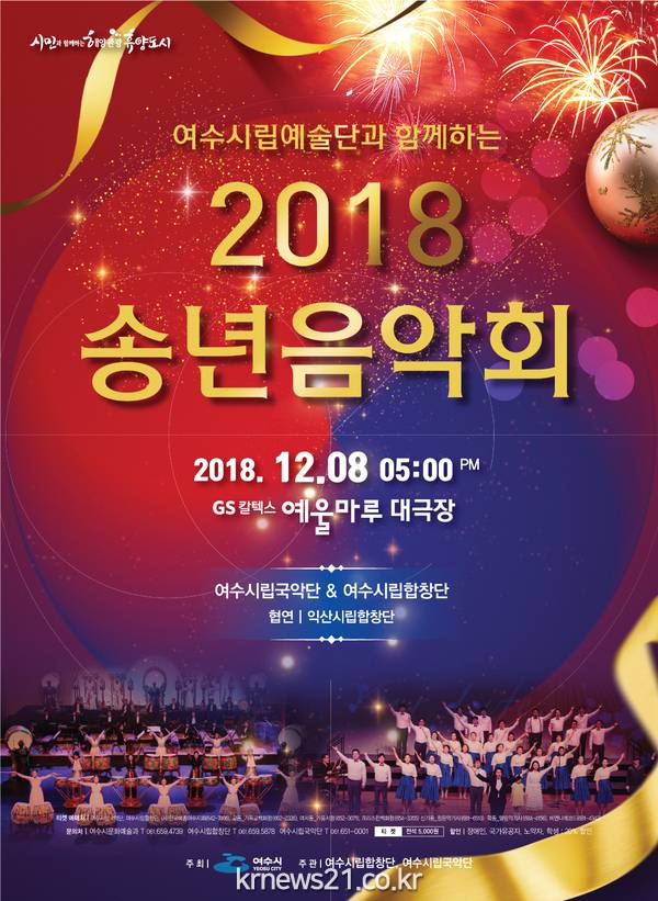 여수시(시장 권오봉)에 따르면 이번 2018년 송년음악회는 여수시립합창단과 시립국악단, 익산시립합창단이 함께 꾸민다.