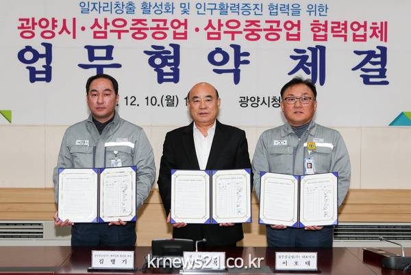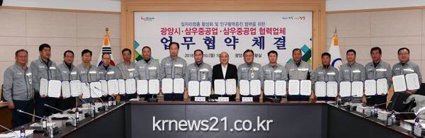 광양시가 삼우중공업(대표 이호태)과 삼우중공업 노사협의회, 협력업체와 손잡고 양질의 일자리 창출과 소속 직원의 지역 정착을 통한 인구 늘리기 활동에 나선다.