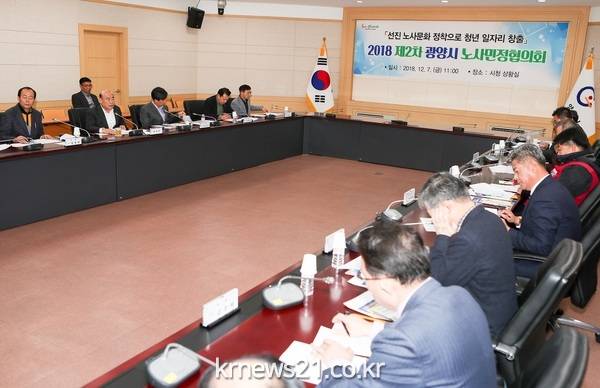 광양시는 지난 12월 7일 시청 상황실에서 노사민정협의회를 개최하고, 청년 일자리 창출 등 현안 문제에 대해 논의하는 시간을 가졌다.