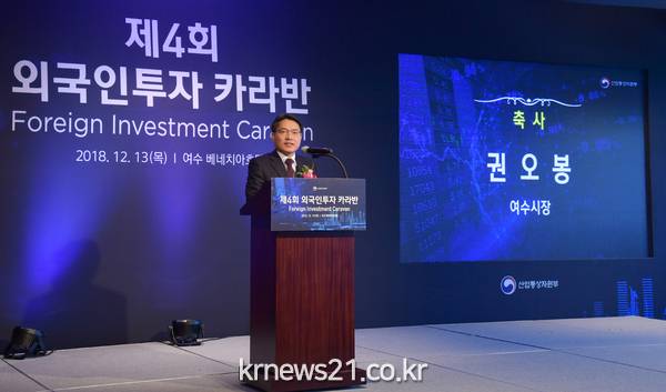 여수시에 따르면 권오봉 시장은 13일 여수 베네치아호텔에서 열린 제4회 외국인 투자 카라반 행사에 참석해 축사를 하며 이같이 밝혔다.