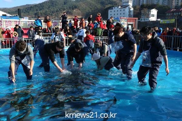 2019년 1월 4일부터 20일까지 홍천강변 일원에서 개최되는 제7회 홍천강 꽁꽁축제에서 전국최초 6년근 인삼으로 키운 인삼송어를 만나볼 수 있다.