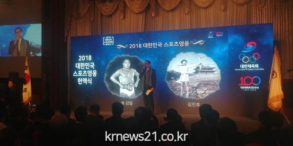 대한체육회는 19일 오후 2시 서울올림픽파크텔에서 2018 대한민국 스포츠영웅으로 선정된 김일(프로레슬링)과 김진호(양궁)의 업적을 기리는 헌액식을 개최했다.