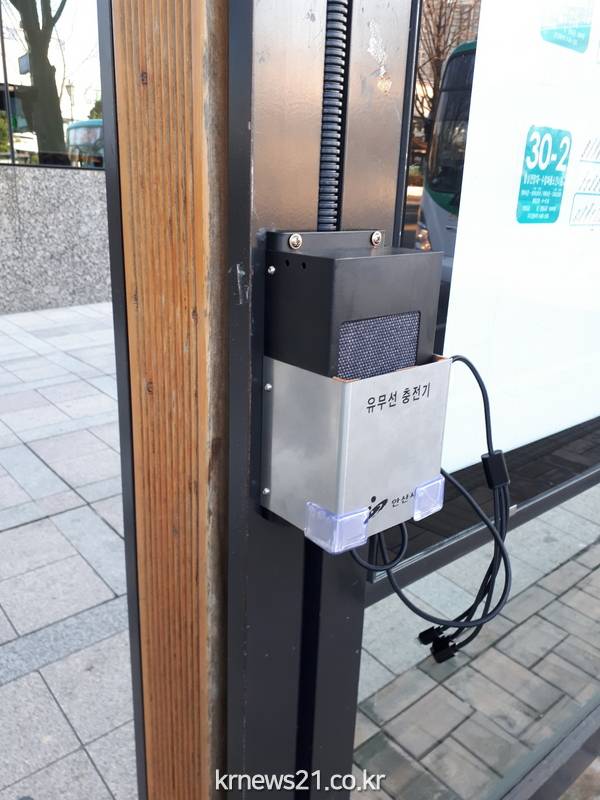 안산시(시장 윤화섭)는 시내버스를 이용하는 시민이 버스를 기다리며 스마트폰을 충전할 수 있도록 버스정류장에 스마트폰 충전기를 시범적으로 설치했다고 24일 밝혔다.