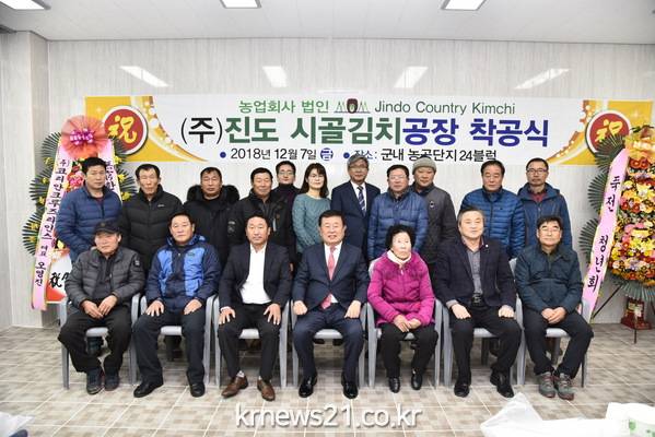 28일 진도군에 따르면 최근 진도군 군내면에 위치한 군내농공단지에 입주하는 ㈜진도 시골김치공장 기업 관계자와 마을주민들이 참석한 가운데 공장 신축을 위한 기공식을 실시했다.