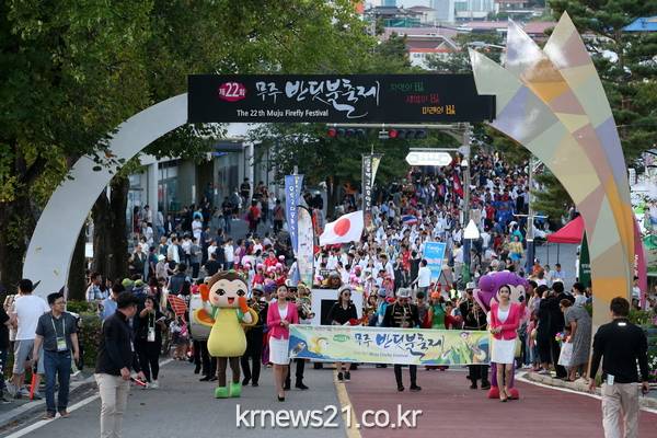 (전북/뉴스21)송태규기자= 무주반딧불축제가 2019년도 문화관광 대표축제가 되며 2년 연속 선정되는 쾌거를 올렸다. 무주군은 3억여 원의 인센티브를 확보하게 됐으며 이를 글로벌 육성축제 도약을 위한 기반으로 삼는다는 방침이다.10년 연속 문화체육관광부 지정 우수축제, 5년 연속 최우수축제, 한국지방자치브랜드 대상 축제부문 대상, 대한민국축제 콘텐츠대상 축제관광부문 대상 · 축제글로벌 명품 대상 수상, 등에 선정된 바 있는 무주반딧불축제는 올해 주제(빛)와 대상(어린이&가족), 지향점(친환경)에 집중해 호평을 받았다.