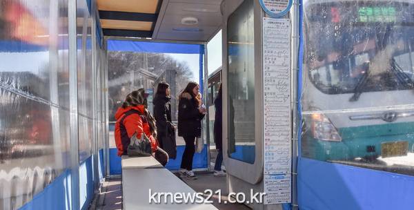 온실텐트가 설치된 정류장 안쪽은 바깥 기온보다 2~3도가 높고, 발열의자도 있어 많은 시민들이 추위를 피하는데 도움이 되고 있다.