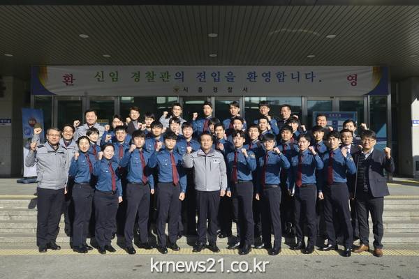 시흥경찰서장(총경 이재술)은, 지난 31일 시흥경찰서 5층 강당에서 신임경찰관(26명) 전입 신고식 및 “이순신에서 길을 찾다.”라는 주제로 신임경찰관으로서 가져야 할 마음가짐 및 자세에 대한 특별교육을 실시하였다.