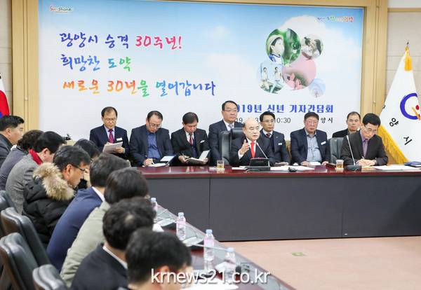 정현복 광양시장이 새로운 도약을 준비하는 2019년 새해를 맞아 1월 3일 시청 상황실 에서 언론인을 초청한 가운데 2019년 신년 기자간담회를 가졌다.