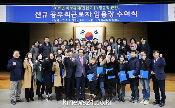 이로써 평택시는 2018년 3월 직접고용 근로자 133명(기간제)과 2019년 1월 간접고용(파견, 용역) 근로자 52명을 전환해 총 185명의 비정규직 근로자를 정규직(공무직)으로 전환했다.