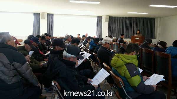 토지면장(김정열)은 총회와 연계하여 경로당 보조금 집행에 관한 사항을 설명하고, “지