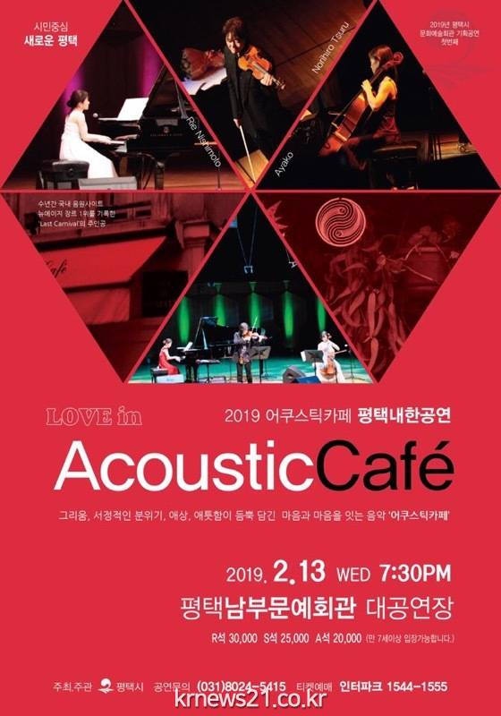 평택시(시장 정장선) 남부문화예술회관 대공연장에서 오는 2월 13일 아시아를 사로잡은 일본의 인기 뉴에이지 연주그룹 ‘어쿠스틱 카페(Acoustic Cafe)’공연이 펼쳐진다.