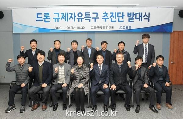 고흥군(군수 송귀근)은 지난 29일 군청 팔영산홀에서 전남 드론산업 생태계 조성을 위한「드론 규제자유특구 추진단 발대식」을 가졌다.