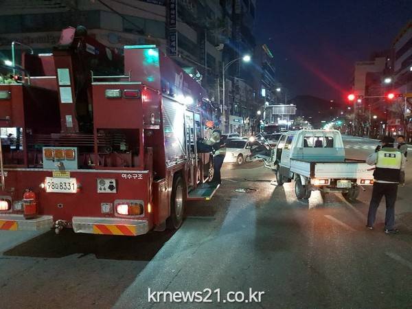 여수소방서(서장 김용호) 119구조대는 지난 29일 오전 6시 40분경 여수시 부영3단지 사거리에서 포터와 승용차와 차 대 차 교통사고 신고 접보를 받고 신속하게 출동했다고 전했다.