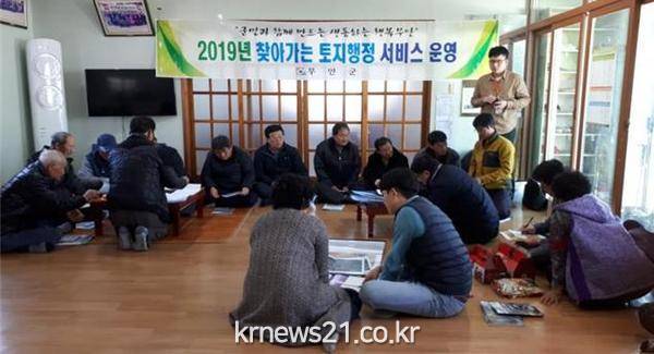 무안군(군수 김산)은 지난 14일 해제면 대사리 슬산마을을 시작으로 매월 둘째 주, 넷째 주 목요일마다 ‘찾아가는 토지행정 서비스’를 운영한다고 밝혔다.