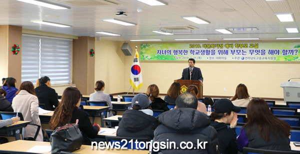 이날 학부모 대상 청렴교육 강의를 실시한 정길주 교육장은 “함께 성장하는 온마을 행복교육의 시작은 학부모와 교직원 간 소통이 필수이다.