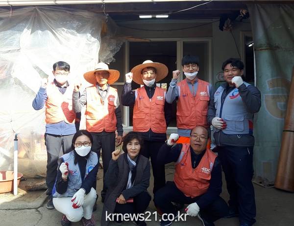 취약계층 2가정을 방문해 도배, 장판, 주거환경 정비 등 사랑의 집수리 봉사활동을 펼쳤