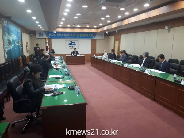 △ 지난달 28일 여수시청 회의실에서 미래발전위원회(정책기획위원회) 제1차 정기회의가 열렸다.