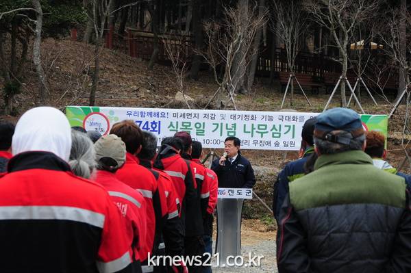 진도군이 지난 15일 의신면 사천리에 위치한 무장애 숲에서 제74회 식목일 기념 나무심기 행사를 개최했다.