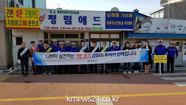김산 무안군수는 “일상생활에서 실천 가능하며 남녀노소 누구나 쉽게 할 수 있는 3분 걷기운동을 습관화하여 주․정차 난을 해소하고 건강에도 도움이 되길 바란다.”고 말했다.