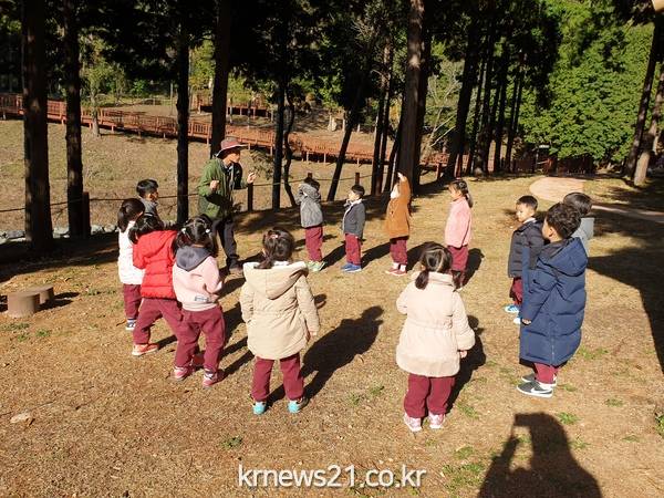 군은 예산 3,730만원을 투입, 어린이집 12개소 등 유아 4,000명을 대상으로 유아들의 인성과 자연 친화적인 태도를 형성하고 전인적인 성장 발달을 위해 다양한 숲 체험 프로그램을 실시하고 있다.