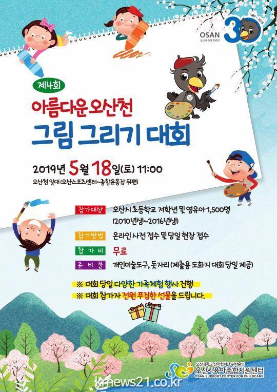 오산시 육아 종합지원센터(센터장 김혜은)는 5월 18일 자연생태 하천인 오산 천일원에서 「제4회 아름다운 오산천 그림 그리기 대회」를 개최한다.